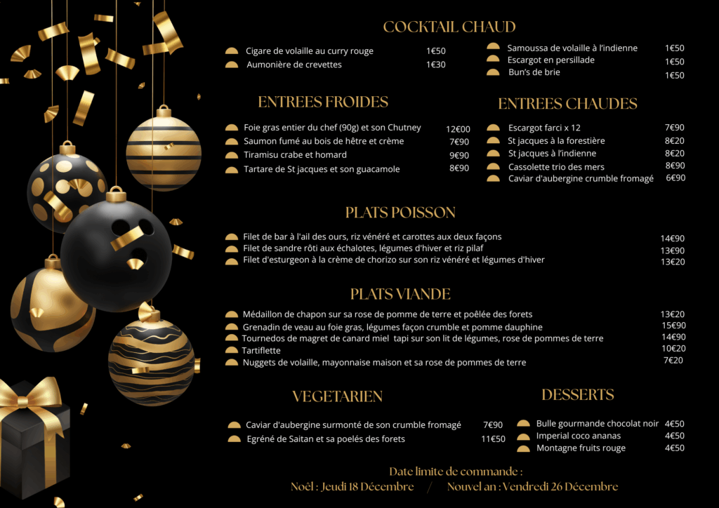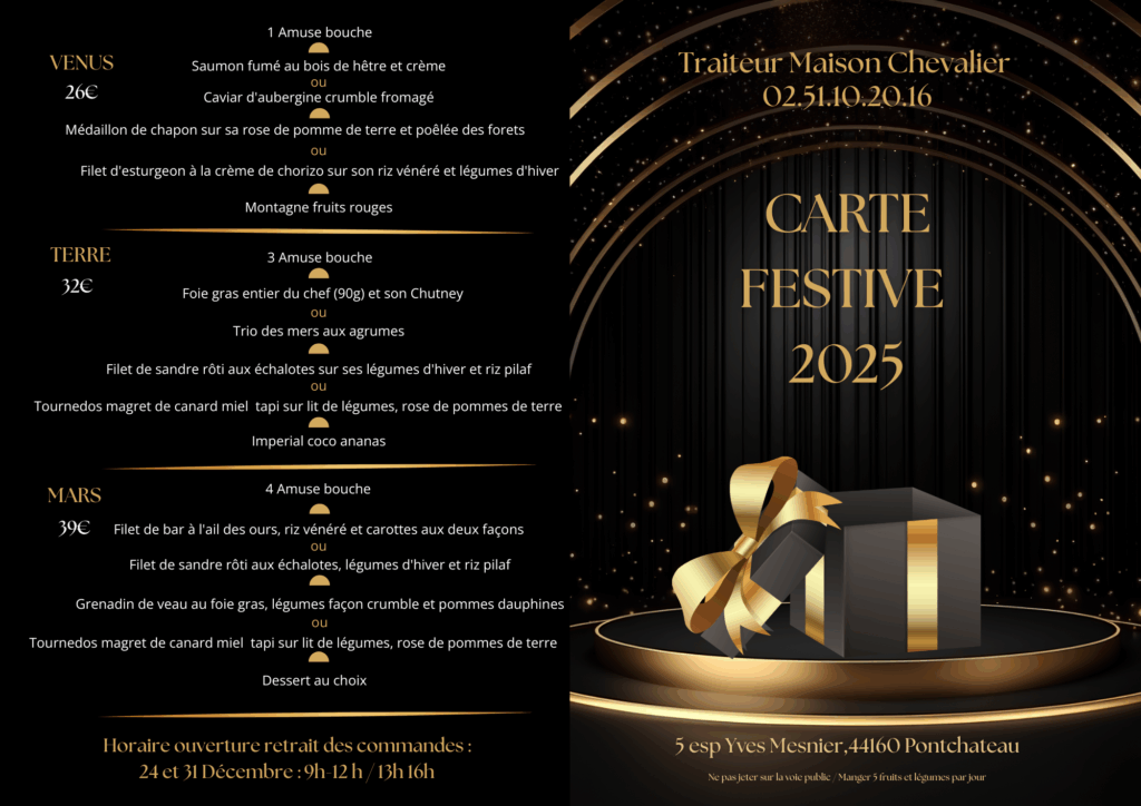 LE SUR MESURE A VOTRE SERVICE Mariage Repas d'entreprise Evènements de la vie Location / Livraison Notre carte Festive :